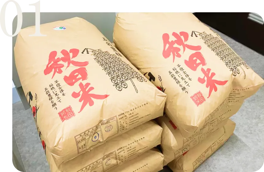 - あきたこまちをはじめ、コシヒカリやひとめぼれ、ササニシキなど秋田で収穫したおいしいお米の取り扱いを行っております。(精米したものも小売り販売しております)